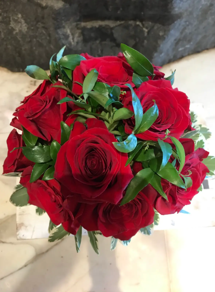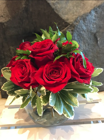 由9支大紅玫瑰插成美美球狀,寓意長長久久。